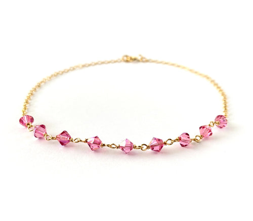 Pink Anklet. Swarovski Crystal Aurora Borealis Pink Ankle Bracelet. Genuine 14k Gold Filled Anklet.